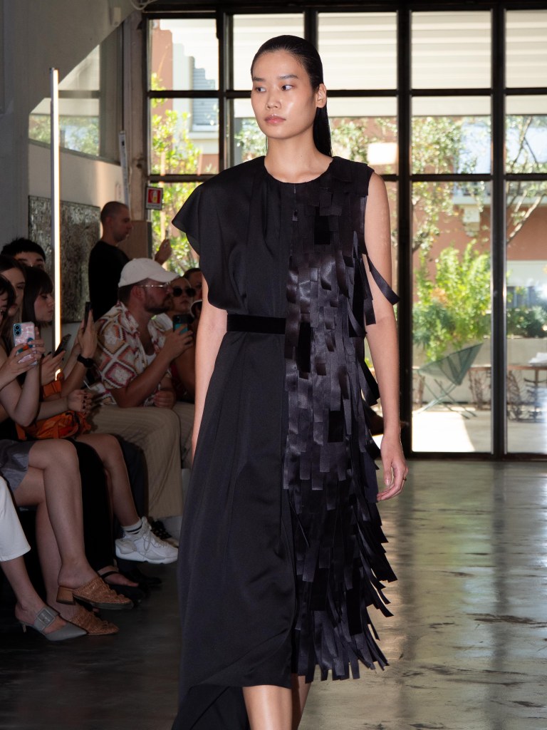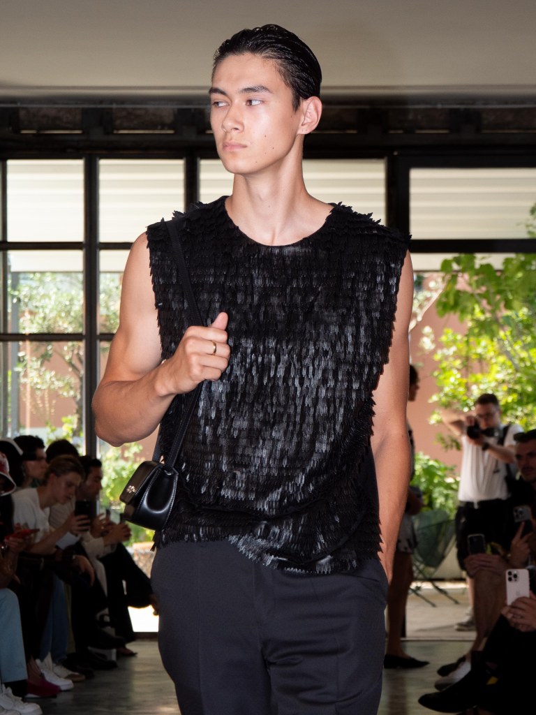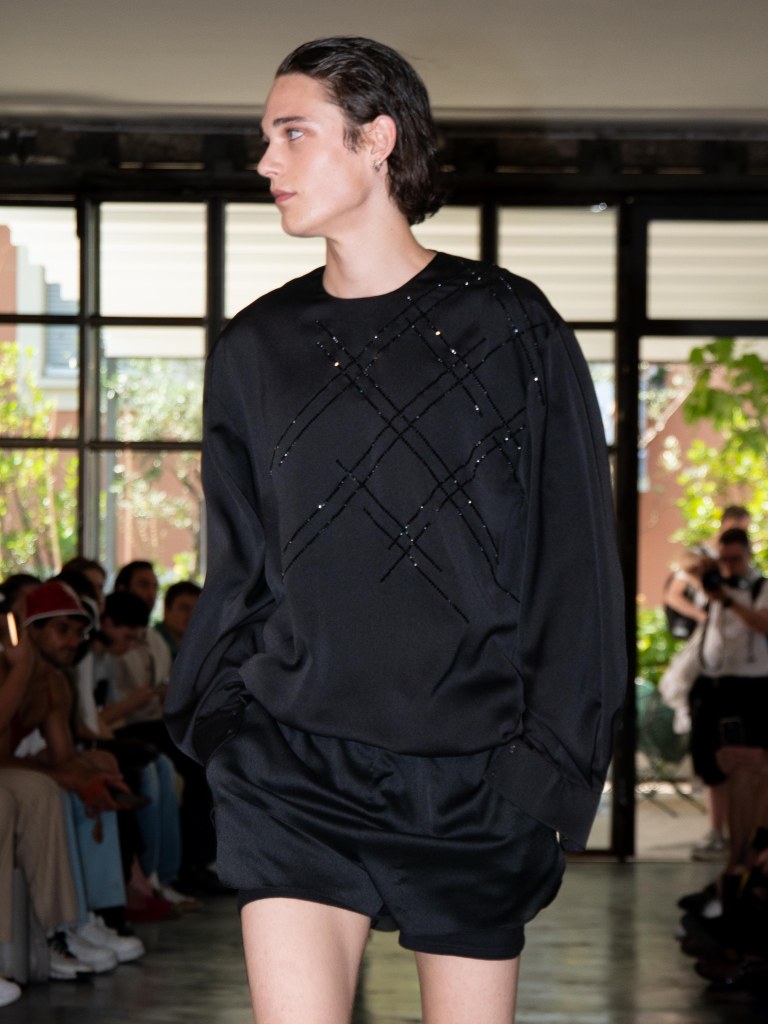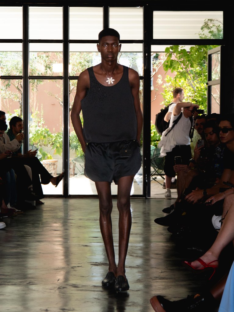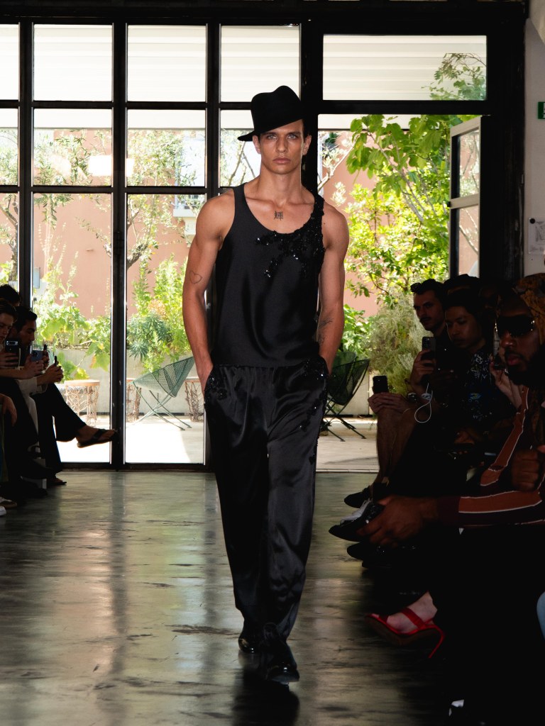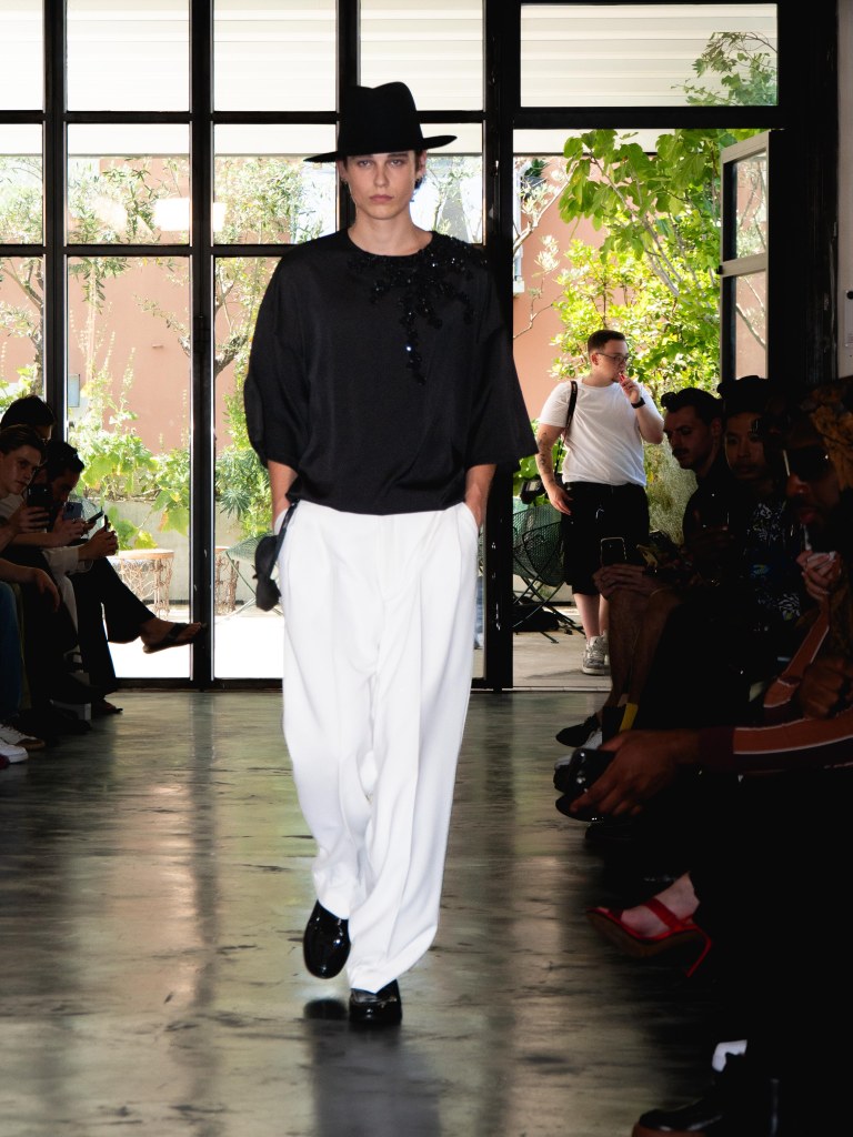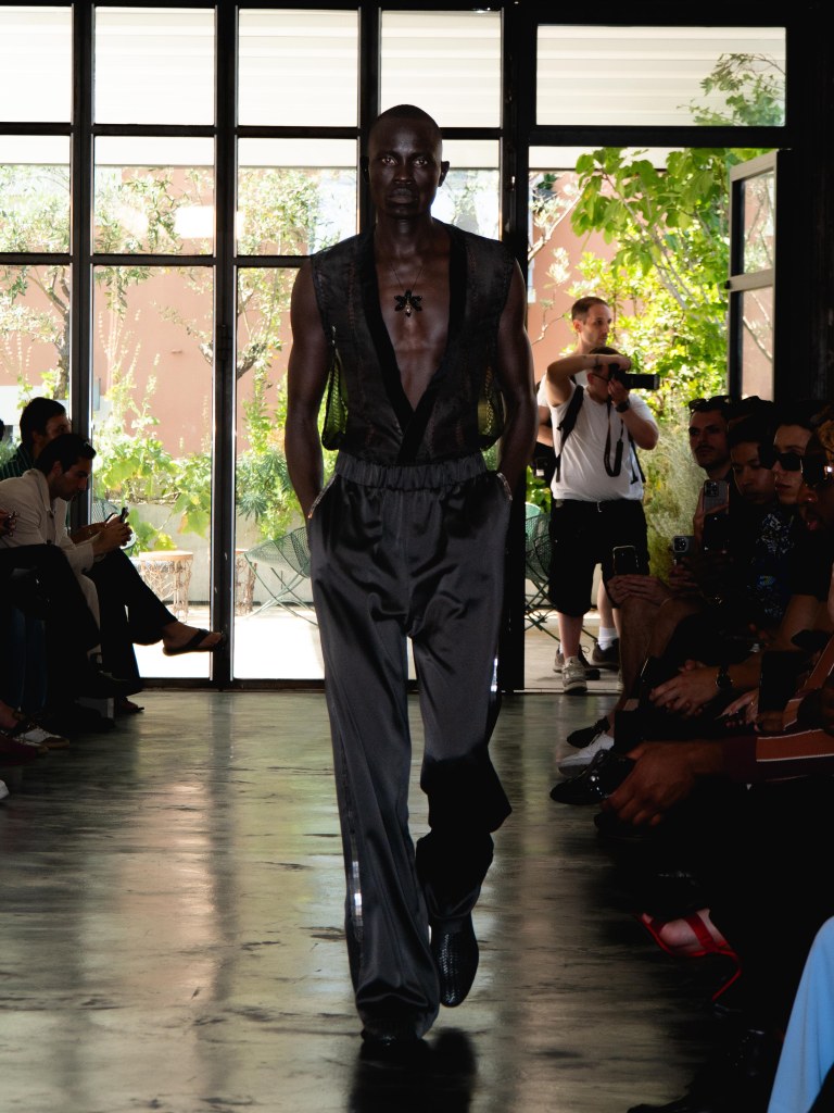 Miguel Vieira’s SS26 collection, A Night In The Garden, brought a sleek and moody energy to Milan Fashion Week. Dominated by black, the whole collection felt like an ode to the elegance of nighttime. There were floral details here and there, but everything stayed minimal, polished, and refined.