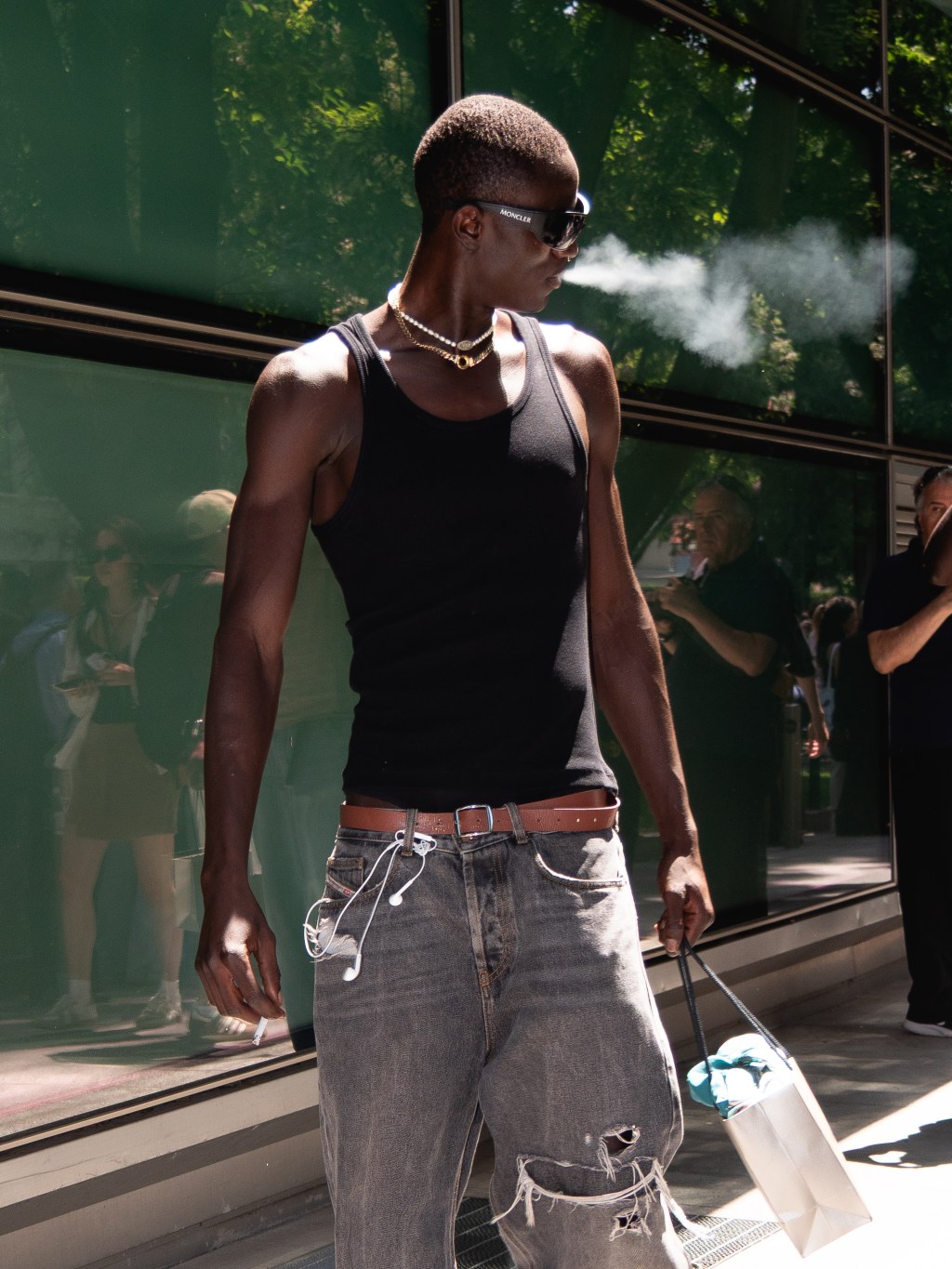 There wasn’t any overly saturated or dominant trend this season. Armani guests showed up in relaxed yet sharp silhouettes. Signature elements like liquid organza and their impeccably tailored suits were on full display. The one recurring theme I did notice, though, was exposed torsos. You see it at Miguel Vieira and David Catalán’s SS26 shows and all over the streets too. Is it a trend, or is it just the heat? It’s the chicken and egg question all over again.