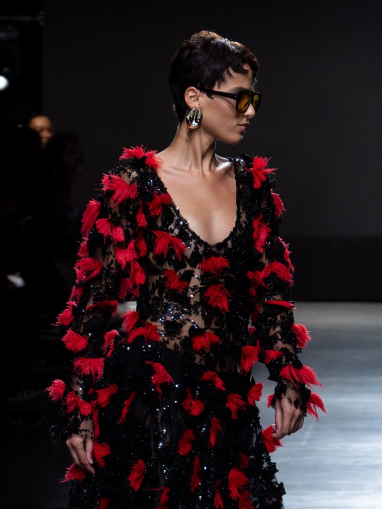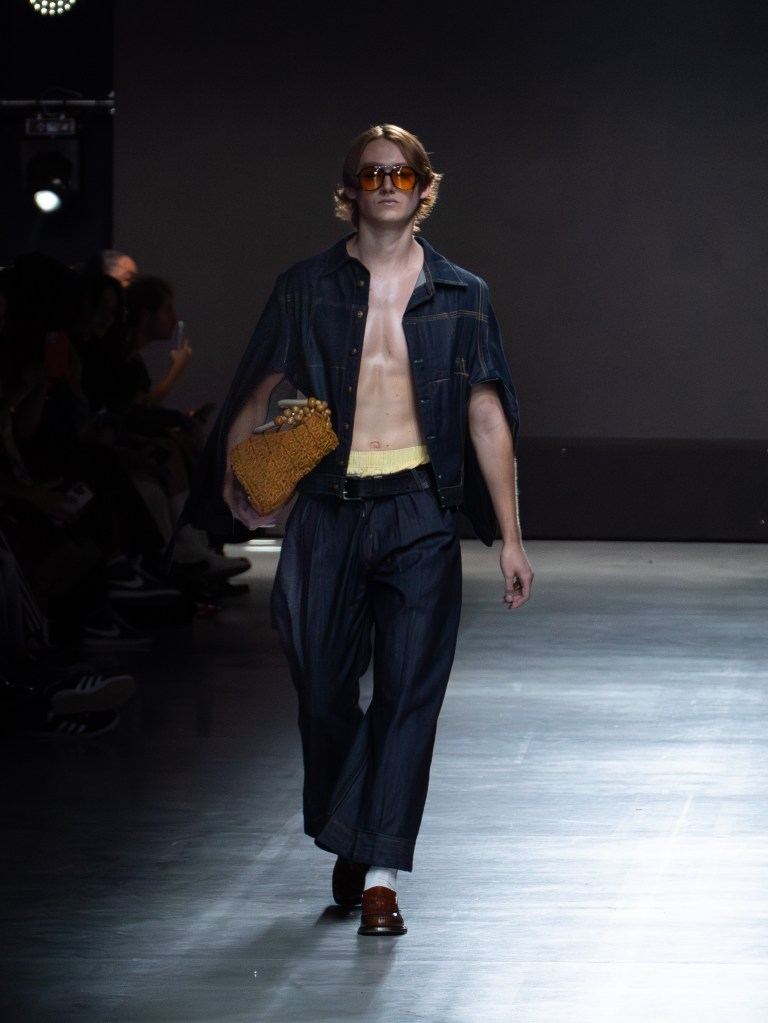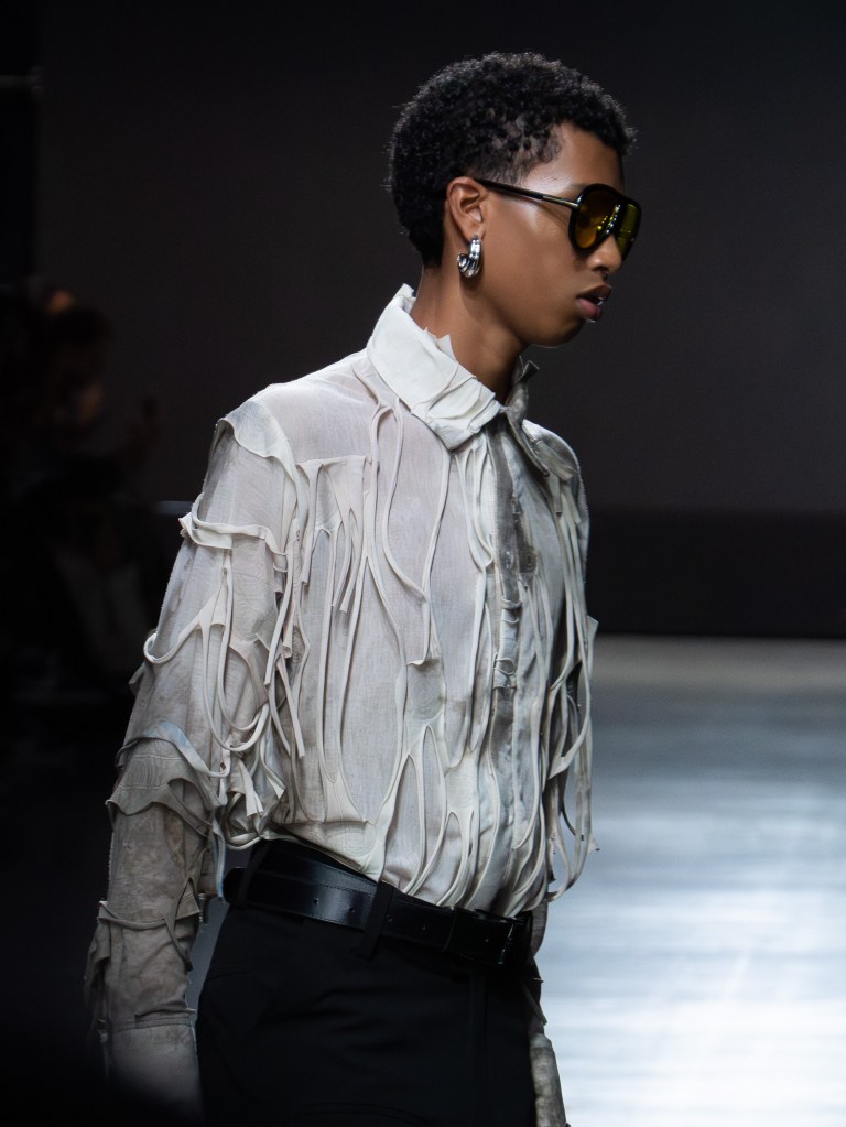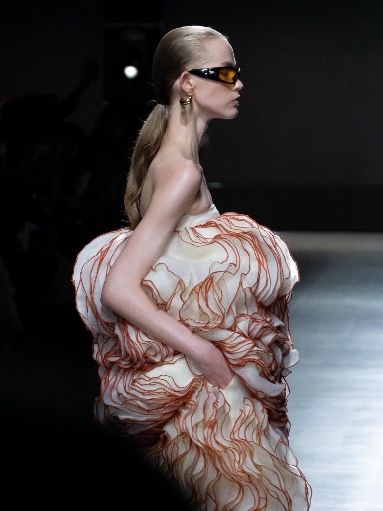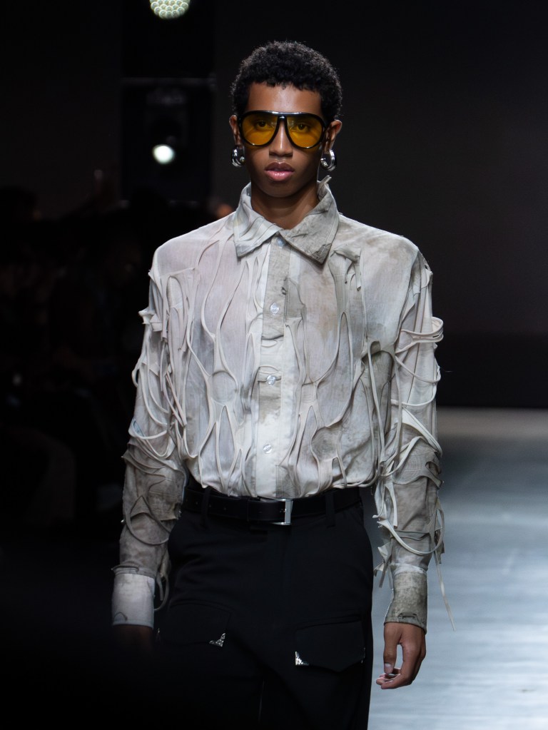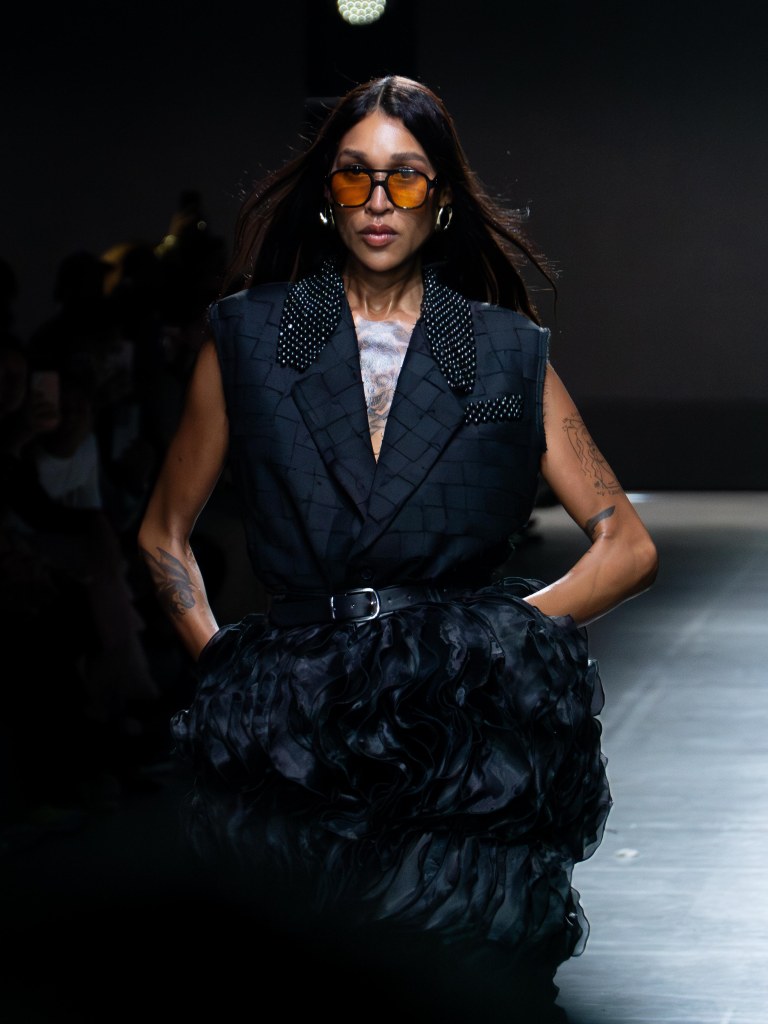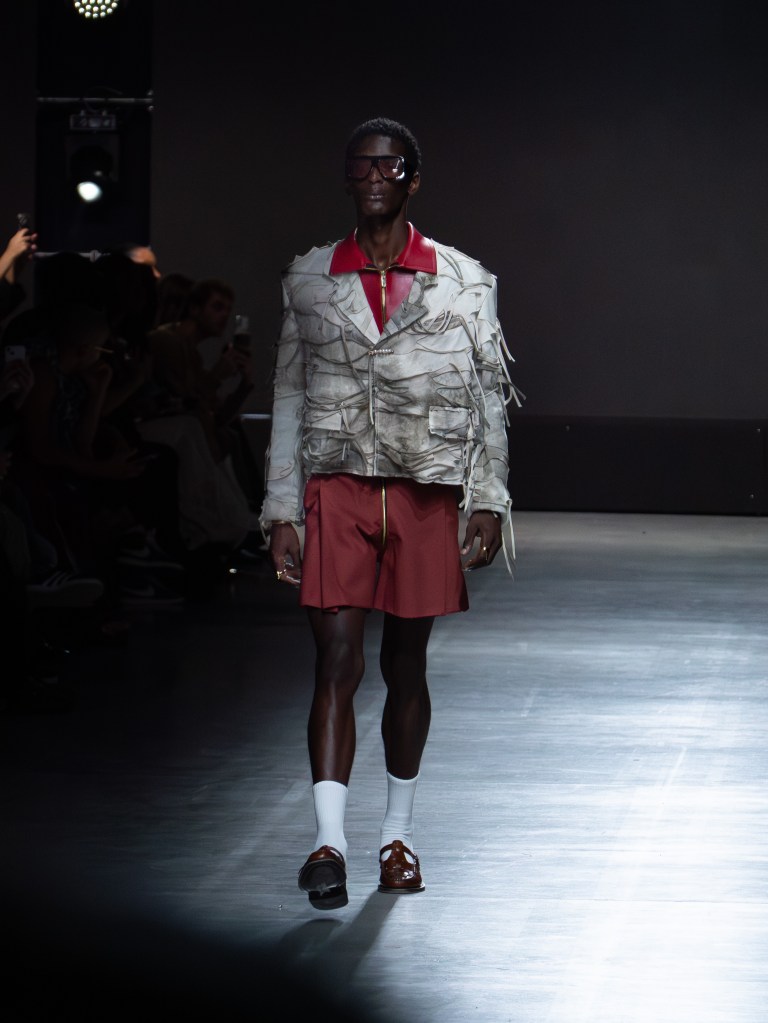 Tokyo James built this season around the idea of chaos and turned disruption into something intentional. The collection mixes sharp tailoring with striking fabric techniques. There was weaving, ruffles, embroidery, lace, and crochet accessories, all working together in a way that feels bold but controlled.