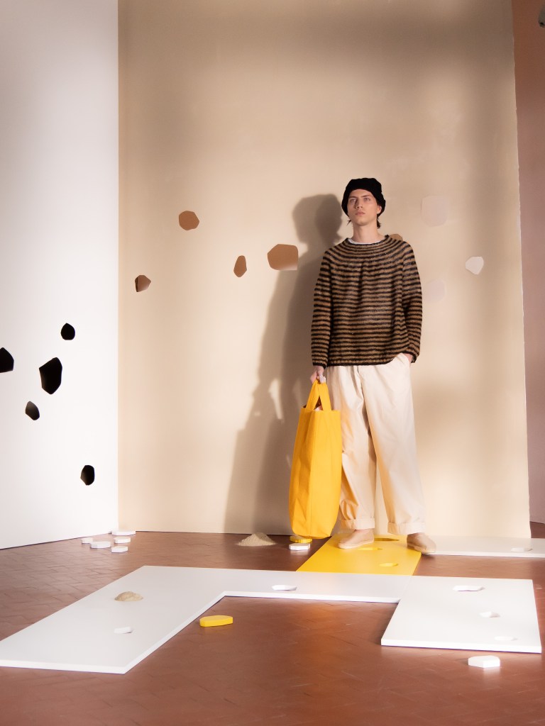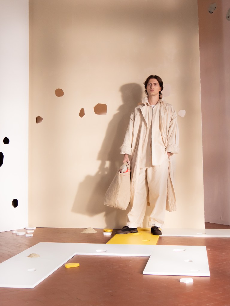 The theme for Alberto Zambelli’s SS26 collection is DECO-N-STRUCT, inspired by Le Corbusier’s L’angle droit. The concept plays with the right angle as a universal symbol of balance. Vertical and horizontal, masculine and feminine, earth and water, light and shadow. It is all about equilibrium. This season Zambelli collaborated with Lineapple and introduced several leather…