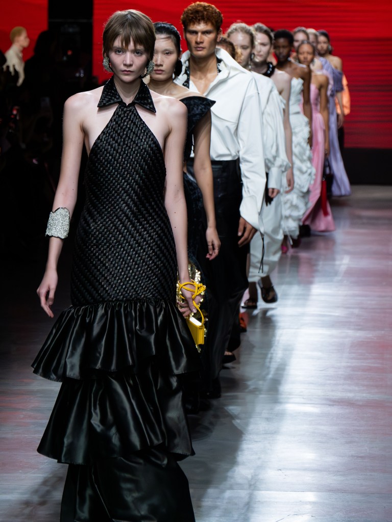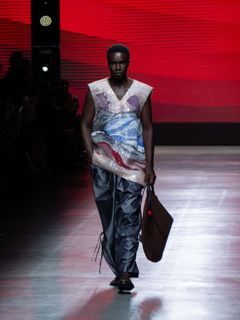 Phan Dang Hoang’s SS26 collection feels like a celebration of Vietnam. This collection showcases traditional craftsmanship, painting, and landscape in a modern and elevated way. What really stood out to me was the material choice and the way it was treated. Silk, leather, velvet, and linen were layered and worked in a way that look meticulous. Oh, and the bead work? Genuinely beautiful. Here are some of my favorite looks from the collection: