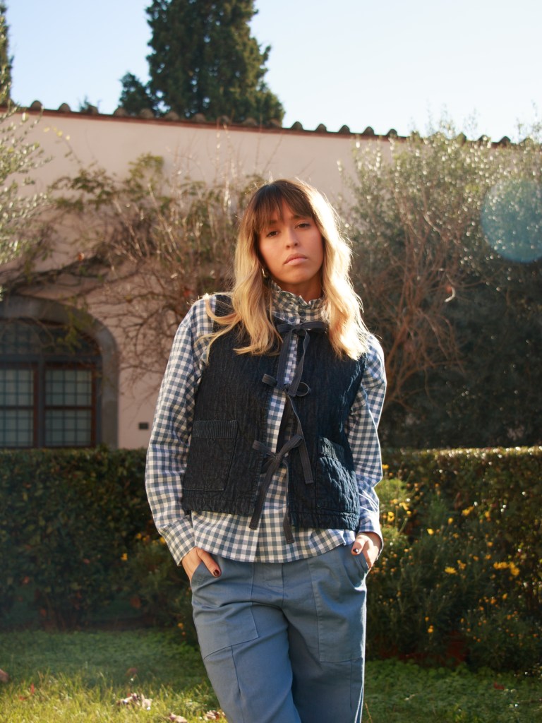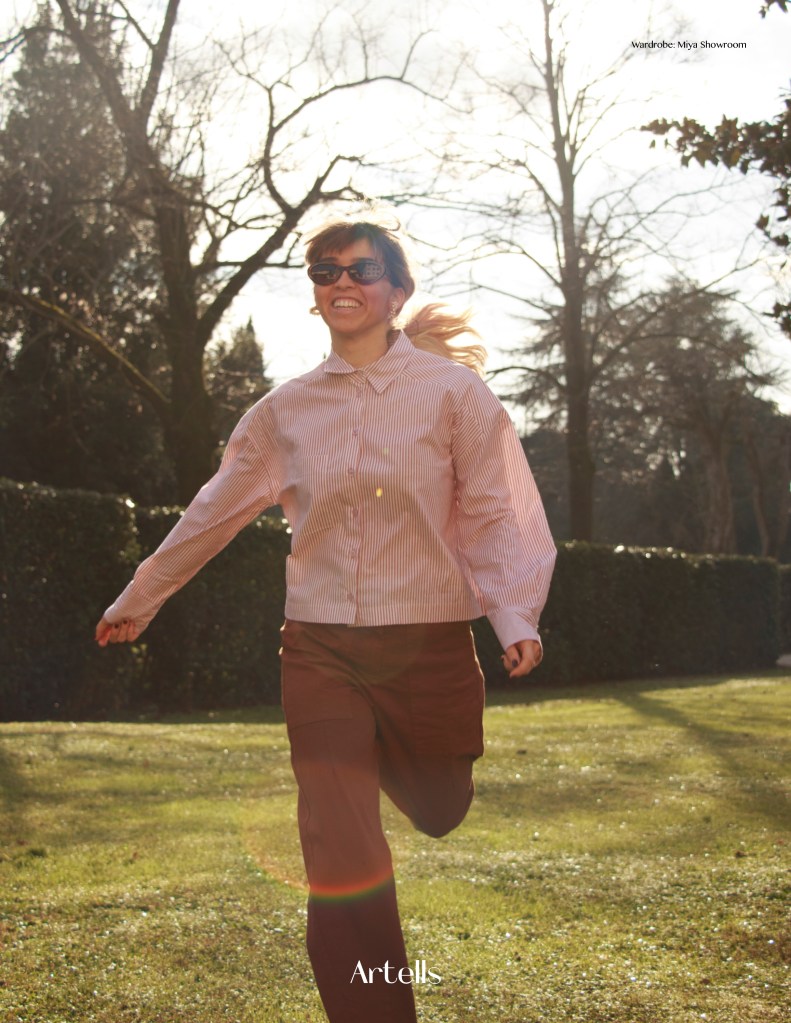 This series of photos is part of MIYA’s SS25 capsule collection, shot in a private garden at a residence in Empoli. Can you believe the forecast said it’d be cloudy that day? Sure, there were moments when the sky was packed with clouds, but the Tuscan sun still came through bright and strong.