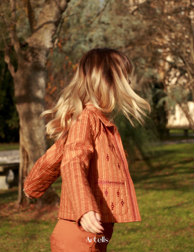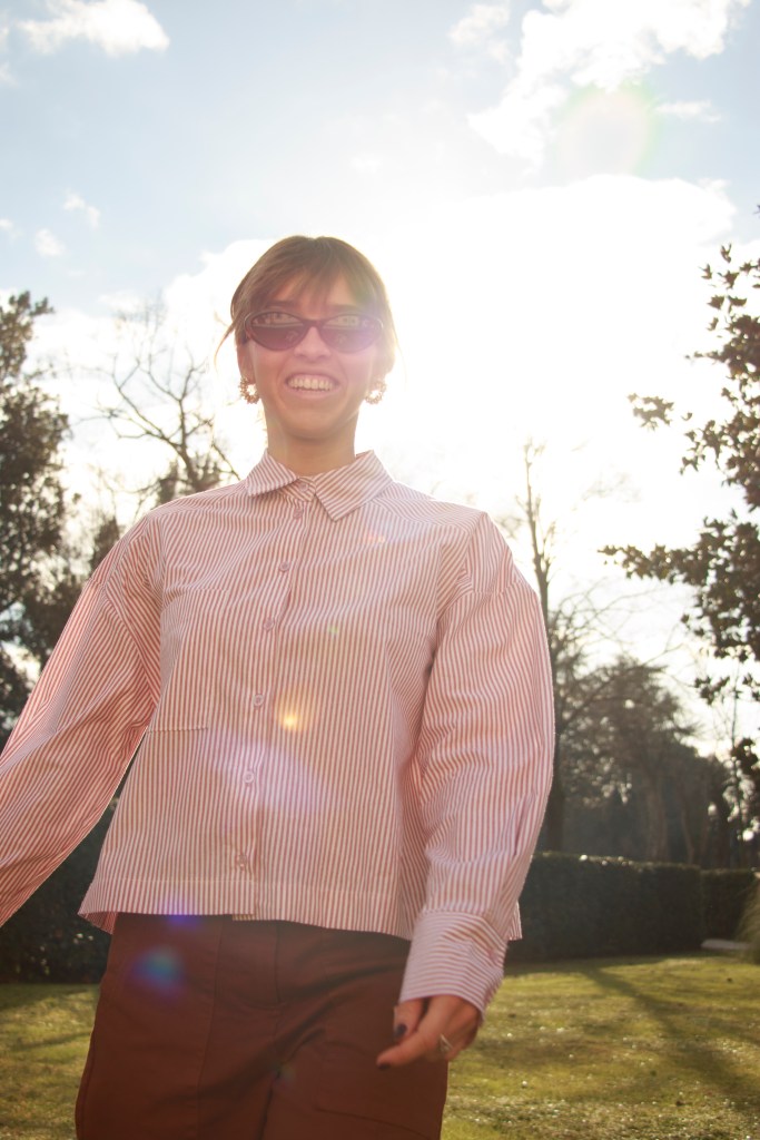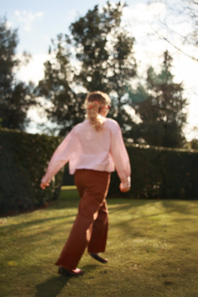 The objective of this photoshoot was to highlight an organic feeling that I felt resonated with the garments’ material. During the shoot, I encouraged the model, Matilde, to tap into her happy self, which led to a lot of twirling and running around. That energy made the photoshoot feel light, fun, and natural. There were also a few quieter, static poses, but I played with perspective, the surroundings, and the sunlight to keep the images dynamic.